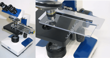 The Thomas RECORDING electrode fiber inspection microscope is intended to be used for the inspection of microelectrode fibers during the manufacturing process of Thomas fiber microelectordes. It is equipped with a special xy-table with microscope slide holder and a microscope slide made of special glass. The electrode is placed on this table that can be moved in x- and y- direction for easy electrode tip and fiber inspection.