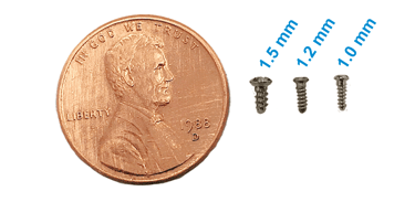 We offer biocompatible bone screws with outer diameters from 1.0 mm up to 2.0 mm in different lenghts. Other screw diameters or lengths are available on request.