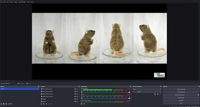 The Cylinder Test AI system works with up to 4 video video cameras and a video recording software that captures the movement of the animal inside the glass cylinder. Up to four video cameras allow continuous and time-synchronized recording of animal movements from four different perspectives in HD resolution. Video files will be stored on the connected personal computer hard disc. Additionally to the video recording software we will soon offer a software for marker less pose estimation based on transfer learning with deep neural networks. The analysis part of the software (pose estimation & automatic scoring) is currently under development.