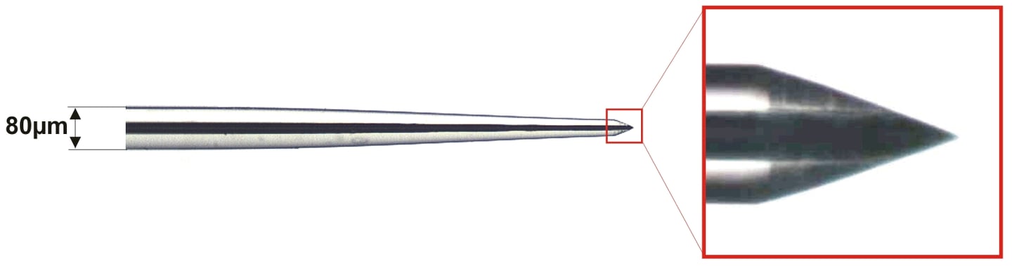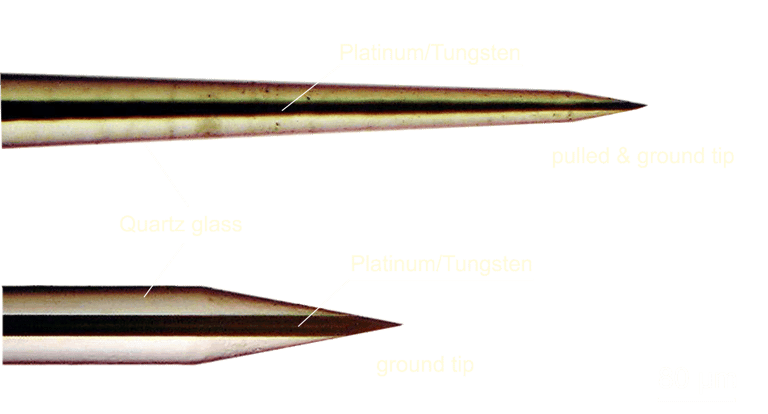 Our microelectrodes are available with two different tip profiles (see left picture).