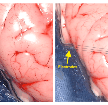 The electrodes are strong enough to penetrate the intact dura of monkey or cat for a relatively long time. Since the dura does not to be opened, the preparation is simplified and danger of trauma and of infection in chronic preparations is greatly reduced.
