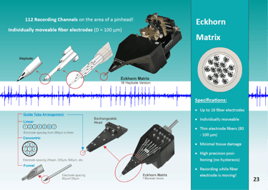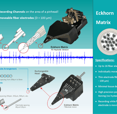 The Eckhorn Matrix is usable for cortical as well as deep brain recordings in all kinds of research applications