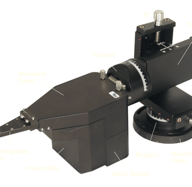 System is completely delivered with motor control device, integrated preamplifier, software, xyz-manipulator, chamber holder, exchangeable head, handheld remote control, etc.