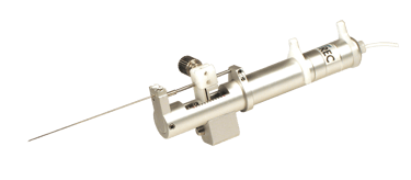 The MEM-40 is a low cost precision microdrive system for single shaft microelectrodes. The MEM-40 microdrive has an electrode travel range of 40,000 µm (40 mm). The guide tube of the microdrive is tapered so that it can easily penetrate the dura mater. The MEM-40 is also available in a dual probe version, which allows two single shaft probes to be operated simultaneously. The MEM-40 is very lightweight and there are several options for integrating the system into a recording setup. Click on the button for more product information.