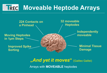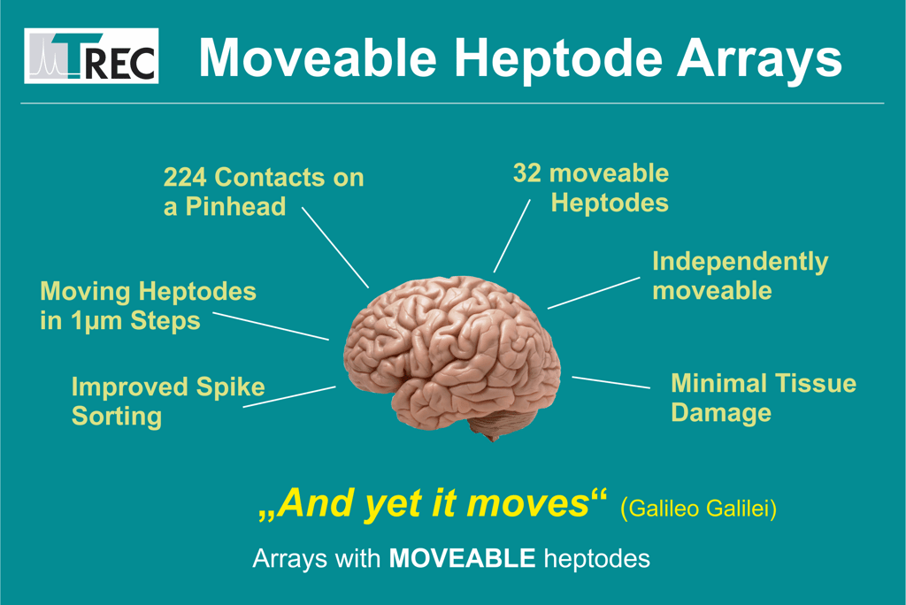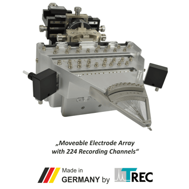 A 224-channel low noise preamplifier is integrated in the microdrive metal chassis. The microelectrodes are completely shielded by the microdrive chassis (working like a Faraday cage) so that electrical interference from the laboratory environment does not cause noise problems. Due to the rubber tube driving principle of the Thomas Matrix it is possible to record neural signals while the electrodes are moving in brain tissue!