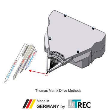 Patented rubber-tube drive, no hysteresis, slick or free motion due to patented rubber tube drive (avoids drawbacks of cable, direct or hydraulic driven systems)
