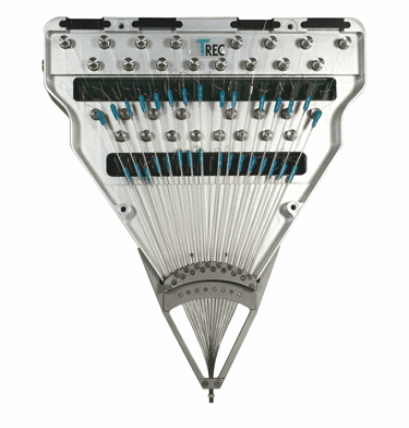 The multielectrode manipulator “Thomas Matrix System” is the latest development of Thomas RECORDING engineering department and a new generation of multielectrode Microdrive systems on the world market. This system uses the very precise Thomas rubber tube drive for parallel independent insertion of up to 32 fiber microelectrodes (single electrodes, tetrodes or heptodes, diameter=80-100µm) through the intact dura into the brain of chronically prepared animals.