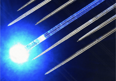 Thomas RECORDING optical fibers are used to deliver light from the light source to the brain target. Our optical fibers have a unique selling point in the conical fiber tip, which results in minimized tissue damage when the fiber is inserted into the brain. Thomas RECORDING optical fibers are made for chronic or acute optogenetic experiments in living animals. They can be implanted permanently or inserted for the duration of a single session. Furthermore these fiber are used for in-vitro applications like in lab settings to control neural activity in cell cultures or brain slices. Our optical fibers can be combined with microelectrodes or microelectrode arrays (fixed or moveable) for simultaneous stimulation and recording, enabling detailed studies of neural circuits.