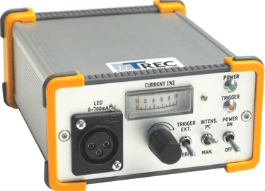 Thomas RECORDING LED light sources controller provides tunable DC constant current for our high power LED light sources. In some experiments illumination stability is vital because any fluctuations or “hot spots” may cause inconsistent protein activation in the cells under illumination. Thomas RECORDING constant-current sourc econtrollers guarantee stable LED light emssion. Our controllers can be triggered by external signal sources to generate time-pulsed light emissions from the LED light sources.