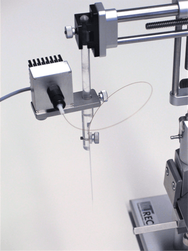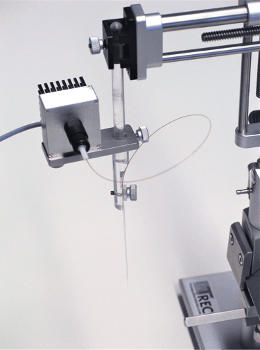 TREC LED light source and optical fiber mounted to a Thomas multielectrode microdrive type "Eckhron Matrix"